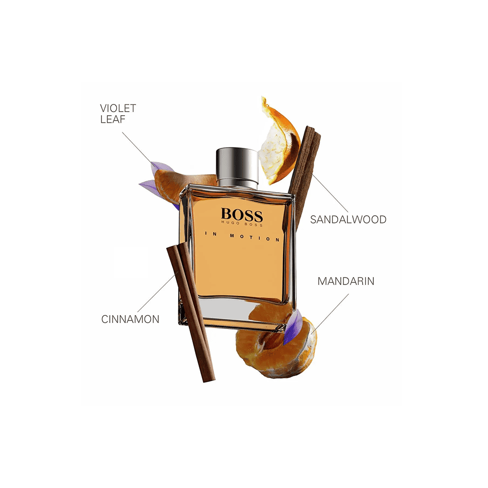 Hugo Boss In Motion Eau de Toilette 100 ml – ένα ανατολίτικο fougère που κυκλοφόρησε το 2002, με εσπεριδοειδή νότα κορυφής από μανταρίνι, πορτοκάλι και περγαμόντο, πικάντικη καρδιά από μοσχοκάρυδο, κανέλα και κάρδαμο, σε ζεστή βάση από σανταλόξυλο, μόσχο και βετιβέρ. Ένα ενεργητικό και μοντέρνο άρωμα, ιδανικό για τη μέρα ή το βράδυ.