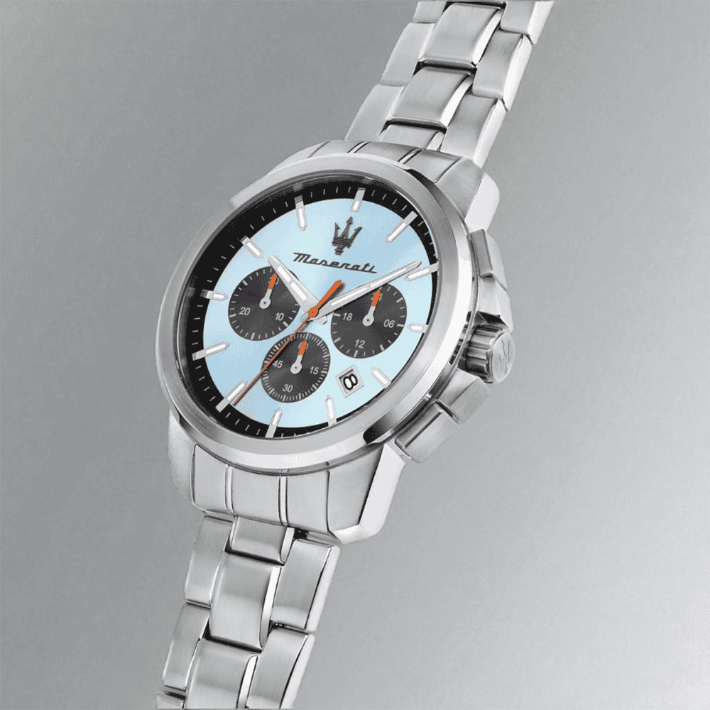 Το ανδρικό ρολόι Maserati R8873621044 από τη συλλογή SUCCESSO σας προσφέρει επιπλέον κομψότητα και στυλ. Αυτό το ρολόι είναι εξοπλισμένο με έναν υψηλής ακρίβειας μηχανισμό quartz και διαθέτει κάσα από ανοξείδωτο ατσάλι με διάμετρο 42 mm, ιδανική για να προσαρμόζεται σε κάθε καρπό. Το καντράν σε τυρκουάζ χρώμα προστατεύεται από ανθεκτικό ορυκτό κρύσταλλο, προσφέροντας όχι μόνο αισθητική αλλά και αντοχή. Το βραχιόλι από ανοξείδωτο ατσάλι, με κλείσιμο τύπου foldover, εξασφαλίζει την απαραίτητη άνεση κατά τη διάρκεια της χρήσης. Επίσης, το ρολόι διαθέτει αντοχή στο νερό έως 5 ATM, ώστε να το φοράτε με αυτοπεποίθηση σε διάφορες συνθήκες. Το προϊόν έρχεται συσκευασμένο στο αυθεντικό κουτί και περιλαμβάνει πιστοποιητικό εγγύησης 2 ετών, προσφέροντάς σας έτσι την ασφάλεια της ποιότητας Maserati.